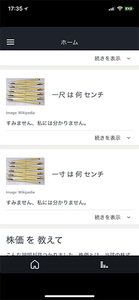 「1寸は何センチ?」と聞くと、Amazon Echoは「それはよくわかりません」となるのに対して、Google Homeは「3.03cmです」と正しく答える。Google Homeはこのほか、1尺、1貫なども正しく理解していた。